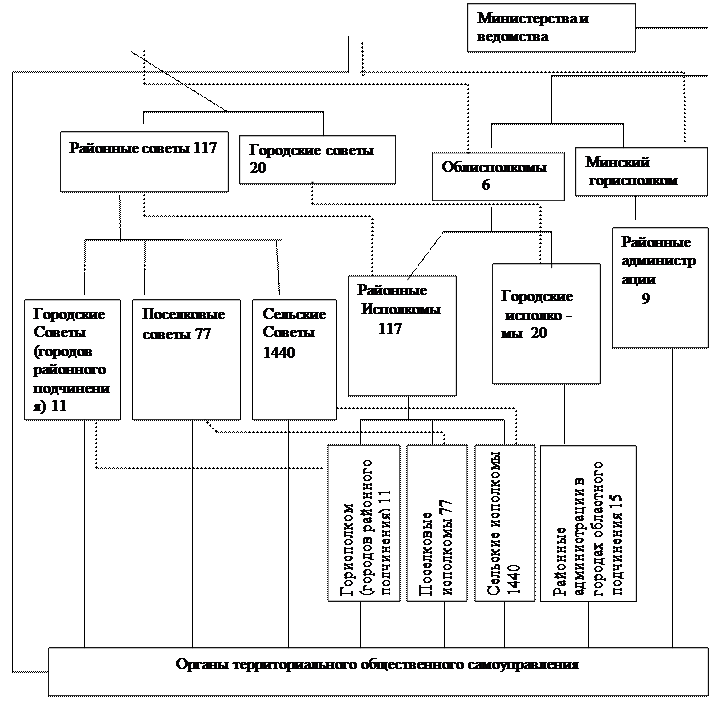 | СОДЕРЖАНИЕ Введение стр.2-3 1.Исторические корни стр.4-5 2.Местное управление на современном этапе стр.6-8 3.Организационная структура местного управления и стр.9-11 самоуправления 4.Формы и методы управления в административном районе стр.12-15 5.Местный бюджет – как регулятор управления в районе стр.15-19 6.Анализ результатов управления административного района на примере Глусского района стр.19-25 Могилевской области Заключение стр.26-27 Список литературы стр. 28 ВВЕДЕНИЕ Важнейшую роль в жизни общества играет государство, которое выступает как форма его политической организации. Государство определяет поведение, жизнедеятельность людей устанавливает общественный строй на определенной территории. Его основное назначение состоит в защите существующего строя и порядка посредством политической воли авторитета власти принуждения и других методов. Сегодня государство рассматривается как основное орудие политической власти признаками, которого являются наличие органов и учреждений, осуществляющих функции власти: системы правовых норм и актов определенной территории, на которую распространяется его юрисдикция. Основой государственного управления в любой стране является государственная власть. Сильная дееспособная власть- это первое условие успешного государственного управления. В своем управленческом воздействии государство опирается на право, использует силу права, применяет ту или иную его форму. Так, в соответствии со статьями 6 и 7 Конституции Республики Беларусь, принятой на республиканском референдуме 24 ноября 1996 года, в республике государственная власть осуществляется на основе разделения ее на законодательную, исполнительную и судебную и устанавливается принцип верховенства права. Основанное на силе власти и верховенстве права государственное управление представляет собой очень сложную систему, имеющую комплексный многоплановый и многогранный характер, что требует выделения в его составе отдельных элементов: сторон, сфер, объектов, учета их сложных взаимосвязей и проявлений. По природе и специфике субъектов управление выделяется: государственное управление общественное управление менеджмент (в качестве субъекта выступает собственник предприниматель), муниципальное управление (местное самоуправление). При этом единство сущности государственного управления предполагает логическую согласованность, взаимодействие и взаимосвязь всех перечисленных элементов обеспечивая государственному управлению сложную целостность. Особое место занимает местное самоуправление. Поиск и внедрение оптимальной модели местного управления и самоуправления- одна из ключевых проблем развития государственности, способ привлечения граждан к участию в решении общенародных задач. Конституцией Республики Беларусь предусмотрено, что местное управление и самоуправление осуществляется гражданами через Советы депутатов исполнительные и распорядительные органы, органы территориального самоуправления, референдумы, собрания и другие формы прямого участия в государственных и общественных делах. Целью данной курсовой работы является изучение управления социально-экономическими процессами на местном уровне для создания стабильных условий выполнения заданий государственной программы социально-экономического развития.