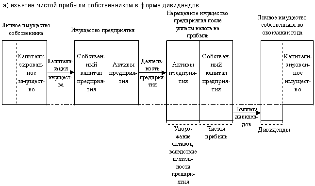 Рис. 1.2.1. Механизм образования прибыли Как видно из схемы, первоначальная величина активов предприятия составляла 1000. Реализовав товар дороже его себестоимости, предприятие увеличило стоимость своих активов до 1200. Эта операция нарушила равновесие баланса, так как у предприятия не возникло соответствующего обязательства на величину разницы между себестоимостью и продажной ценой. Для восстановления равновесия в состав собственного капитала была введена новая статья «Прибыль», сумма которой (200) равна этой разнице. В результате собственный капитал предприятия составил 1200. Владельцы предприятия стали богаче на величину полученной прибыли. Важно понять суть технического приема, использованного для фиксации прибыли: она выполняет роль гирьки, которую бросают на противоположную чашку весов, чтобы уравновесить их. Удорожание активов, проявившееся в том, что их продажная цена оказалась выше затрат по приобретению, трансформировалось в увеличение статьи, отражающей долю собственников в капитале предприятия. Сумма реинвестированной (капитализированной) собственниками прибыли будет отражена в бухгалтерском балансе предприятия как нераспределенная прибыль. В совокупности с уставным капиталом (величина которого не изменяется без перерегистрации учредительных документов) нераспределенная прибыль составляет собственный капитал предприятия. Если реинвестирование прибыли производится собственниками из года в год, то каждая новая сумма добавляется к уже отраженной в балансе, т. е. происходит накопление нераспределенной прибыли. Таким образом, собственный капитал можно представить как совокупность двух частей: относительно неизменной (уставный капитал) и переменной (накопленная нераспределенная прибыль). Изменения переменной части собственного капитала не обязательно происходят только в сторону ее увеличения. Если в отчетном году понесен убыток, то его сумма вычитается из величины ранее накопленной нераспределенной прибыли. Если же размер убытка превышает сумму реинвестированной ранее прибыли, то превышение убытка отражается по той же самой статье (накопленная прибыль), но с отрицательным знаком. Такой результат свидетельствует о «проедании» предприятием своего уставного капитала. В случае повторяющихся из года в год убытков предприятие (если оно еще не обанкротится к тому времени) должно официально уменьшить свой уставный капитал на величину накопленных убытков. «Увеличение стоимости активов», вследствие которого возникает прибыль, – достаточно общее понятие. В частности, оно предполагает удорожание имущества за счет действия внешних факторов, например курс имеющейся у предприятия иностранной валюты растет независимо от усилий самого предприятия. Тем не менее данный актив становится дороже и предприятие получает прибыль. Теоретически можно представить такую ситуацию, когда предприятие получает прибыль, ничего не «предпринимая», только за счет влияния внешних факторов. Экономическая теория развеивает эти надежды. В условиях рынка невозможно длительное время получать выгоду, пользуясь лишь своим преимущественным положением в какой-либо области: уникальной структурой активов, монопольным владением технологиями и т. п. Конкуренция очень быстро уравняет стартовые возможности всех предприятий данной 