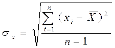 Х – средняя арифметическая; Σ – знак суммирования; хi – значения, при которых принимает значения от 1 до n; n – количество вариант; Среднее квадратическое отклонение