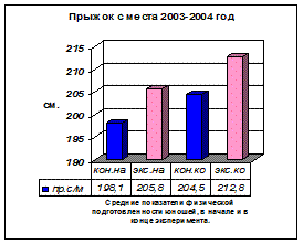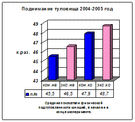 ГЛАВА III. РЕЗУЛЬТАТЫ ИССЛЕДОВАНИЯ 3.1. Результаты исследования физической подготовленности, экспериментальной и контрольной группы После проведенного исследования показателей физической подготовленности, школьников в возрасте 15-17 лет, путем исследования контрольной и экспериментальной группы, мы выявили, что результаты экспериментальной группы лучше, чем у контрольной группы. Исследование физической подготовленности показали следующие результаты: (см. прил.1; прил.2; прил.3; прил.4; прил.5; прил..6).