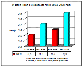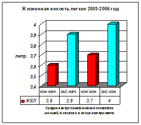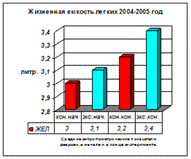 Рис. 45 Рис. 46 Пробы Генче (сек) показали следующие результаты: у экспериментальной группы мальчиков прирост составил с 24,5 до 26,8, что составило 9,7 %, а у контрольной группы мальчиков с 20,7 до 22,9, что составило 10,5 %. У девушек экспериментальной группы прирост составил с 24,1 до 25,3, что составило 5,2 % , а у контрольной группы с 17 до 18,8, что составило 10,7 %. д) Измерение ЖЕЛ (см. рис. 47, 48).