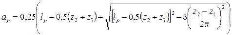 = 0,25∙(120 – 0,5∙(53 + 25) + ((120 – 0,5∙(53 + 25))2 – 8(53 – 25 /6,28)2 )1/2 ) = 40,25. Фактическое межосевое расстояние a = ap p = 40,25∙25,4 = 1022 мм. Монтажное межосевое расстояние a м = 0,995∙а = 0,995∙1022 = 1017 мм. Определим длину цепи l = lp p = 120∙25,4 = 3048 мм. Определим делительные диаметры звездочек d д 1 = p /sin(180°/z 1 ) = 25,4/sin(180°/25) = 202,76 мм, d д 2 = p /sin(180°/z 2 ) = 25,4/sin(180°/53) = 428,98 мм. Определим диаметры окружностей выступов звездочек De 1 = p (0,532 + ctg(180/z 1 )) = 25,4∙(0,532 + ctg(180/25)) = 214,68 мм, De 2 = p (0,532 + ctg(180/z 2 )) = 25,4∙(0,532 + ctg(180/53)) = 441,74 мм. Диаметры окружностей впадин Di 1 = dд 1 – 2∙(0,5025∙d 1 + 0,05), где d 1 – диаметр ролика шарнира цепи, мм.