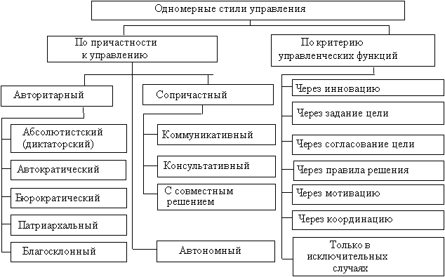Рис.4. Основные критерии стилей управления 5. Стиль управления Это типичная манера и способ поведения менеджера. Стили могут классифицироваться по разным критериям (рис.4). А. Критерий участия исполнителей в управлении Наиболее четко здесь различают три стиля: - авторитарный (единолично менеджер решает и приказывает — сотрудники исполняют);