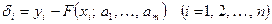 де , , …, - невідомі коефіцієнти. Треба знайти такі значення коефіцієнтів , за яких крива (1) якомога ближче проходитиме до всіх точок , , …, , знайдених експериментально. Зрозуміло, що жодна з експериментальних точок не задовольняє точно рівняння (1). Відхилення від підстановки координат у рівняння (1) дорівнюватимуть величинам .
