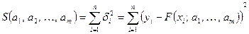 За методом найменших квадратів найкращі значення коефіцієнтів ті, для яких сума квадратів відхилень