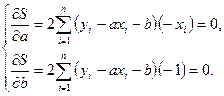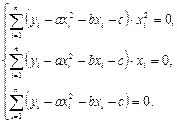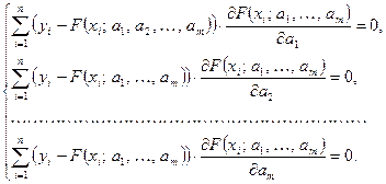 Диференціюючи вираз (2) по невідомих параметрах , матимемо відносно них систему рівнянь: