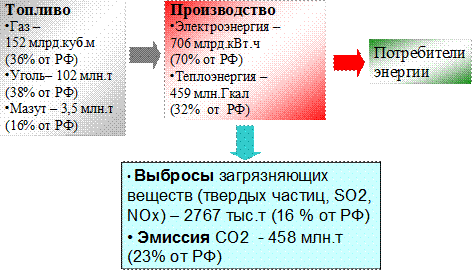рис.1 Динамика производства электроэнергии, млрд. кВт. час Согласно прогнозам, к 2010 году мировое потребление электроэнергии может возрасти до 18-19 трлн. кВт.час, а к 2020г.- до 26-27 трлн. кВт. ч. соответственно будут возрастать и установленные мощности электростанций мира, которые уже в середине 1990-х г превысил и уровень 3 млрд. кВт. Источник: Топливо и энергетика России. Статистический сборник. – М. – Финансы и статистика. – 2006. – С. 56–57 1.2 Структура потребления электроэнергии В ходе реформы меняется структура отрасли: осуществляется разделение естественномонопольных функций (передача электроэнергии по магистральным ЛЭП, распределение электроэнергии по низковольтным ЛЭП и оперативно-диспетчерское управление) и потенциально конкурентных (производство и сбыт электроэнергии, ремонт и сервис), и вместо прежних вертикально-интегрированных компаний (их принято называть «АО-энерго»), выполнявших все эти функции, создаются структуры, специализирующиеся на отдельных видах деятельности. Предполагается, что генерирующие, сбытовые и ремонтные компании в перспективе станут, преимущественно, частными и будут конкурировать друг с другом. В естественномонопольных сферах, напротив, происходит усиление государственного контроля. Таким образом, создаются условия для развития конкурентного рынка электроэнергии, цены которого не регулируются государством, а формируются на основе спроса и предложения, а его участники конкурируют, снижая свои издержки. Как считают специалисты, в период 1995—2015 гг. общее потребление всех видов ПЭР в мире может возрасти примерно в 1,6—1,7 раза и составит около 17 млрд. т условного топлива (у. т.). При этом в структуре потребления доминирующее положение сохранится за топливно-энергетическими ресурсами органического происхождения (более 94%). Доля энергии атомных электростанций (АЭС), гидроэлектростанций (ГЭС) и других не превысит 6%. В общем, объеме производства и потребления ПЭР лидирующую роль сохранит нефть, на втором месте останется уголь и на третьем — газ. Структура ТЭК в мировом хозяйстве определяется видами используемой первичной энергии и балансом между ними. 1.3 Особенности воздействия электроэнергетики на территориальную организацию хозяйства Изучением условий, особенностей и эффективности территориального размещения производства и его развития занимаются экономическая география и региональная экономика. Под условиями размещения производства имеются в виду экономические и природные предпосылки рассматриваемых процессов (технический прогресс, минерально-сырьевые ресурсы и т.д.), под особенностями – их структурные качества (территориальная структура хозяйства, отраслевая структура хозяйства регионов и т.п.), а под эффективностью – экономическая, социальная и экологическая результативность (степень достижения соответствующих целей. Территориальное разделение труда является формой развития общественного производства в целом, а поэтому, как и способ производства, должно рассматриваться в единстве двух его сторон – производительных сил и производственных отношений. 1.4 Топливно-энергетические ресурсы России Структура потребления первичных энергоресурсов в мировом хозяйстве выглядит следующим образом: • нефть — 41,2%; • твердое топливо — 28,3%; • газ - 22,3%; • атомная энергия — 9%; • ГЭС и прочие нет