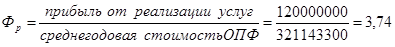 Следовательно, на покрытие выбытия ОПФ направлено 8,23% от общей стоимости их на начало года. Коэффициент интенсивности обновления показывает, что темп роста обновления ОПФ составляет 43,1%. Это говорит о хорошей динамике ввода новых ОПФ, так как коэффициент обновления составляет 13,37% , против 6,24% - коэффициент выбытия. 6. Определить показатели использования основных фондов Фондоотдача.