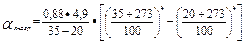 aл =28,5/м3 час°С, Определяем коэффициент отдачи тепла конвекцией: l=9,8·10-2 кДж/м час °С; n=20,1·10-6 м2 /сек; Pr=0.722 b=1/381. Находим критерий Грасгофа: Gr=(gbDt dЭ 3 )/n2 , Gr=(9,81·88·1,0·0,763 ·1012 )/(381·(20,12 )=1335·106 , Pr·Gr=0,722· 13,35·108 =964·106 ,тогда