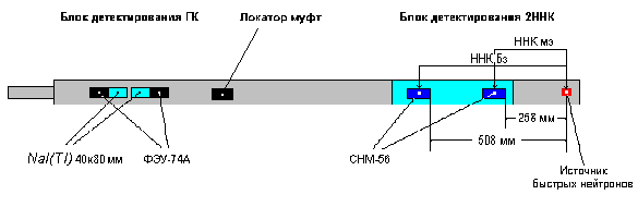 Рис.15 Схема зондовых установок прибора РКС-3М Водородосодержание рассчитывается по формуле: