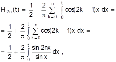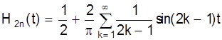 Рассмотрим это явление на примере прямоугольной волны H(t) с периодом 2p. Если вычислить сумму первых 2n членов, то все члены с косинусами будут равны нулю и получаем: