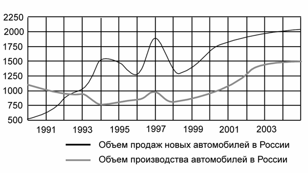 Связано это в первую очередь с ‘‘деколонизацией’‘ и крахом автомобильного рынка в странах ближнего зарубежья. В последние годы поставки автомобилей из России в бывшие союзные республики сократились почти в двадцать раз. Связано это с падением платежеспособности населения в республиках бывшего СССР и утратой позиции в бывших странах социалистического лагеря и на свободных рынках дальнего зарубежья. Происходит дальнейшее свертывание внешнеторгового оборота отечественной легковой автомобильной промышленности. Российская легковая автомобильная промышленность отступила не только с дальних рубежей. По существу, сегодня рынок российской легковой автомобильной промышленности простирается от Смоленска до Читы.