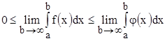 Таким образом, рассмотренный интеграл расходится при 3. Признаки сходимости несобственных интегралов Как было показано, несобственные интегралы сходятся не всегда. Следовательно, если их вычисление громоздко, то желательно заранее выяснить их существование. Кроме того, бывают случаи, когда несобственный интеграл вообще нет необходимости вычислять, а требуется лишь знать, сходится он или нет. В этом случае используются теоремы о сходимости несобственных интегралов, основанные на сравнении исследуемого несобственного интеграла с известными. Теорема 1. Пусть функции 1) если интеграл 2) если интеграл Доказываем первую часть. Из неравенств