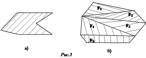 -угольника равно Многоугольник разбивает множество всех точек плоскости, не принадлежащих многоугольнику, на два множества, одно из которых называется внутренней , а другое внешней областью многоугольника. Точки внутренней области многоугольника называются внутренними точками многоугольника. На ниже данных рисунках внутренняя область многоугольника заштрихована. Многоугольник называется выпуклым , если каждая прямая, проходящая через две соседние вершины, является границей полуплоскости, в которой лежат остальные вершины многоугольника. На рисунке 3а изображен невыпуклый многоугольник, а на рисунке 3б – выпуклый.