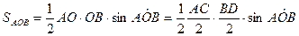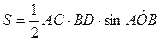 измерения площадей (п.1 §1) имеем: Докажем еще одну теорему о площади параллелограмма, которой часто пользуются при решении задач. Теорема 7. Площадь параллелограмма равна: а) произведению смежных сторон на синус угла между ними; б) половине произведения диагоналей на синус угла между ними. ○ Пусть S – площадь параллелограмма ABCD , диагонали AC и BD которого пересекаются в точке О . а) Треугольники ABD