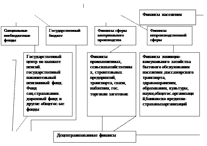 2.4.Сравнительный анализ финансовых систем России и Казахстана Под финансовой системой в узком смысле слова, т.е. исключая кредитные отношения, деятельности других посредников и фондовый рынок, принято понимать совокупность финансовых отношений, охватывающих формирование и использование первичных, производственных и конечных денежных доходов. С точки зрения структуры финансовую систему можно рассматривать как совокупность сфер, звеньев, опосредующих формирование и использование доходов, а также как систему финансовых учреждений. В вышеприведенном определении термина заложена принципиальная модель классификации финансовой системы, исходя из сущностной характеристики финансов, их места в общественно-экономических процессах. В соответствии с этим критерием финансовая система Казахстана состоит из трех частей (рис.2) : · Общегосударственные финансы · Финансы предприятий, организаций и учреждений · Финансы населения Рис.2. Финансовая система Казахстана