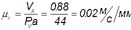 Строим план скоростей для второго положения механизма (т.к. при первом положении механизма будет присутствовать только скорость точки А, а остальные скорости точек будут равны 0). На листе чертежа произвольно выбираем полюс скоростей Pv, и из полюса проводим отрезок длиной 44 мм перпендикулярно звену ОА, который является графическим аналогом скорости точки А. В конце вектора скорости обозначаем точку а . Назначаем масштабный коэффициент плана скоростей по формуле: