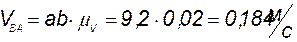где, VA -известно по направлению и значению; VBA -неизвестно по значению, но известно по направлению; VBC - неизвестно по значению, но известно по направлению. На плане скоростей из конца вектора VA проводим прямую перпендикулярно звену AB. Из полюса скоростей PV проводим прямую перпендикулярно звену ВС. На их пересечении обозначаем точку b . Вектор ab - графический аналог скорости VBA и вектор PV b- графический аналог скорости VBC =VB . Находим действительные значения VBA и VB :