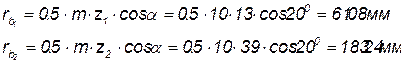 Радиусы основных окружностей (угол профиля зуба a=20Å)