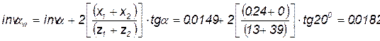 Угол зацепления Угол зацепления определяется по таблице инволют. Инволюта угла зацепления определяется по формуле: