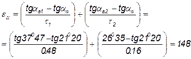 по таблице инволют определяем угол зацепления