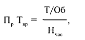 где Пр Твр — среднечасовая производительность труда работников; Т/Об — товарооборот за анализируемый период (руб.); Нчас — количество отработанных человеко-часов за анализируемый период; среднедневная по формуле