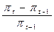 *Декабрь к декабрю предыдущего года Экономисты вычисляют также темп инфляции , который показывает, ускорилась или замедлилась инфляция за определённый период. Темп инфляции для данного года определяется вычитанием индекса цен прошедшего года из индекса цен этого года, затем эта разница делится на индекс цен прошедшего года и умножается на 100%. Формула для вычисления темпа инфляции имеет вид: Темп инфляции = где π t – уровень цен в текущем периоде; π t -1 – уровень цен в предыдущем периоде. Например, в 2006 году индекс потребительских цен составлял 11,6%, а в 2007 году – 16,6%. В этом случае темп инфляции составил: Темп инфляции
