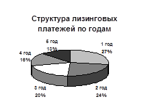 Мною разработана программа, позволяющая выявить и проанализировать структуру лизинговых платежей по линейной схеме, как по числовым данным (таблицы 8 - 9), так и по графикам. Диаграммы значений распределения лизинговых платежей приведены на рисунке 9.