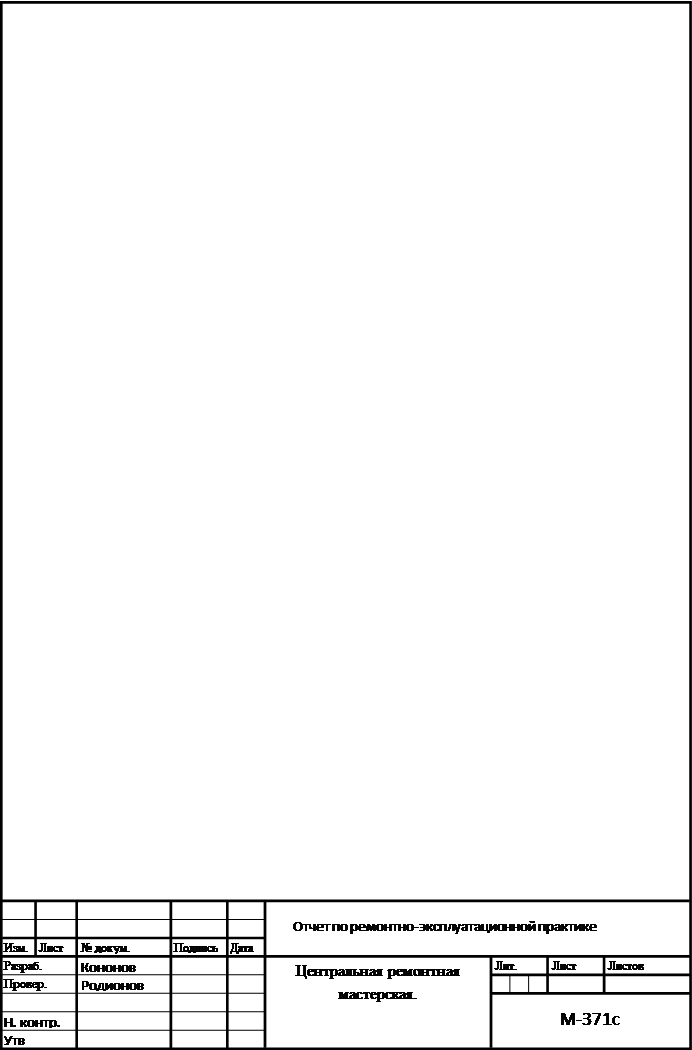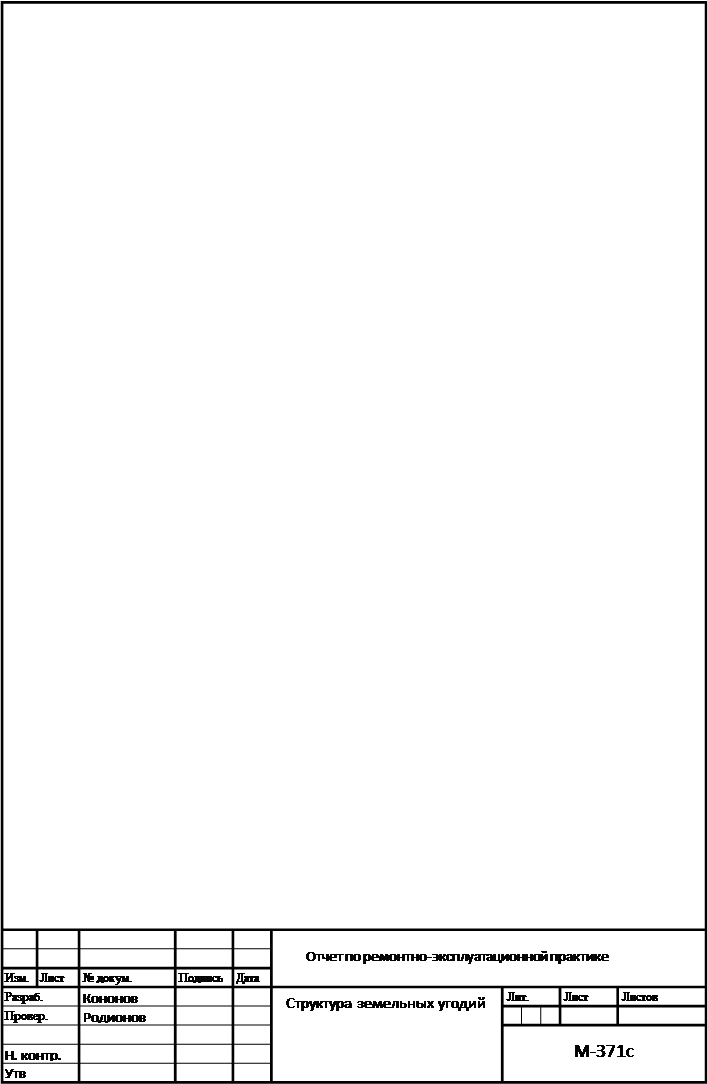 Министерство сельского хозяйства РФ ФГОУ ВПО ОРЛОВСКИЙ ГОСУДАРСТВЕННЫЙ АГРАРНЫЙ УНИВЕРСИТЕТ Факультет: «Агротехники и энергообеспечения» Кафедра: «Надежности и ремонта машин» ОТЧЁТ По эксплуатационно-ремонтной практике студента 3сокращённого курса группы М-371(с) Кононова И. А. Место практики: ООО «Орловский лидер» Филиал № 7 «Малоархангельский» Время практики: с 28 июня по 1 августа 2009 г. Руководитель практики от кафедры: к.т.н., доцент Коренев В. Н. Руководитель практики от организации: старший инженер Щеглов И. Н. Орел 2010