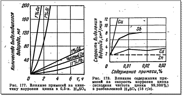 3) большая зависимость от природы и содержания катодных примесей или структурных составляющих сплава: чем ниже перенапряжение водорода на катодных примесях или структурных составляющих сплава и чем больше их содержание, тем больше скорость коррозионного процесса (рис. 177 и 178); 4) большая зависимость скорости коррозии от адсорбции на корродирующем металле различных веществ, влияющих на строение двойного электрического слоя и величину перенапряжения водорода на металле; 5) протекание процесса с ускорением, т. е. с увеличением скорости коррозии во времени (см. рис. 177); это связано с тем, что прохождение катодной реакции разряда водородных ионов облегчается в результате увеличения числа микрокатодов на поверхности корродирующего металла за счет обнажения новых катодных участков по мере растворения металла (рис. 179); 6) большая возможность появления водородной хрупкости металлов. [5] Список использованной литературы: 1. Жук Н.П. «Курс теории коррозии и защиты металлов»,учебное пособие для вузов- издательство: ООО ТИД «Альянс»,2006 г.-472 стр. 2. Медведева М.Л «Основы электрохимической коррозии и защиты оборудования при транспорте и хранения нефти»,Москва,2004г-80 стр 3. Медведева М.Л. «Коррозия и защита оборудования при переработке нети и газа», Москва-2005г-311 стр 4. Улиг Г. «Коррозия металлов», издательство «Металлургия»-1968г.-308 стр 5. Юхневич Р «Техника борьбы с корозией»,издательство «Химия»-1980г-224стр [1] Жук Н.П. Курс теории коррозии и защиты металлов: Учебное пособие для вузов-2-е издание/М:ООО ТИД «Альянс»,2006 г-472 стр.(148стр) [2] Медведева М.Л. «Основы электрохимической коррозии и защиты оборудования при транспорте и хранения нефти и газа», 2004г. [3] Улиг Г. «Коррозия металлов (основы теории и практики), издательство «Металлургия», 1968, с.308 (51 стр.) [4] Жук Н.П. «Курс теории коррозии и защиты металлов»,учебное пособие для вузов-издательство:ООО ТИД «Альянс»,2006 г.-472 стр. [5] Жук Н.П. «Курс теории коррозии и защиты металлов»,учебное пособие для вузов-издательство:ООО ТИД «Альянс»,2006 г.-472 стр.(260стр) |