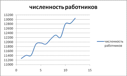 Чем меньше дисперсия и среднее квадратическое отклонение, тем надежнее средняя величина, в нашем случае показатели достаточно велики, что говорит о несколько низкой надежности общей средней. По коэффициенту оссиляции можно сказать, что колеблемость крайних значений вокруг средней составляет примерно 3,1%. А по относительному линейному отклонению доля усредненного значения признака абсолютных отклонений от средней величины составляет 0,64%. Коэффициент вариации также имеет небольшую величину, что говорит о типичности общей средней, а совокупность можно в целом характеризовать как однородную. Задание 6 По показателю численности рабочих (данные таблицы 1.1) определить темпы роста, абсолютные приросты, темпы прироста, абсолютную величину 1% прироста. Вычислить также средние показатели динамики. Сделать выводы.