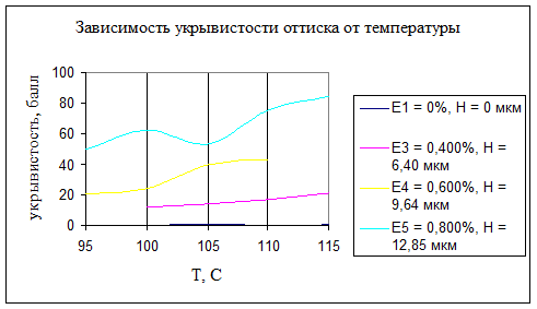 Рис. 4.13. График зависимости укрывистости оттиска от температуры