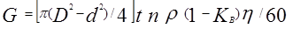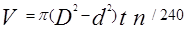 Зная шаг витка t (в м), частоту вращения шнека п (в об/мин)и пренебрегая объемом нитки витка, находят секундную производиельность шнека V (в м3/с).