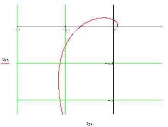 Легко заметить, что при m=0 выражения (28) и (29) сводятся к выражениям для обычной КЧХ данного объекта. Формулы для определения пар настроек на всём диапазоне частот, которые обеспечивают заданное значение степени колебательности, могут быть получены из характеристического уравнения замкнутой АСР (22). Однако вместо составляющих Эти настройки будут найдены из условия сечения графиком расширенной КЧХ замкнутой системы критической (в смысле критерия Найквиста-Михайлова) точки с координатами (-1,j0), т.е. из условия