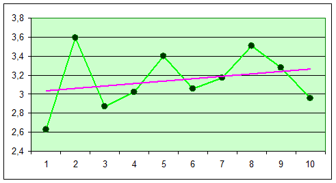 График №1 В общем, мы получили средние показатели по вопросам, но, если присмотреться внимательней, можно отметить некоторые тенденции к отрицательному или положительному полюсам шкалы. Это проиллюстрировано на графике №1. По полученным нами результатам нельзя выявить наличие или отсутствие доверия в организации в целом. Не существует единого мнения у сотрудников по этому вопросу. Таблица №2. Среднее значение и дисперсия по шкале оценки мотивов к труду