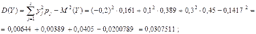Найдем среднеквадратическое отклонение случайной величины Y:
