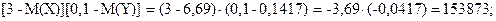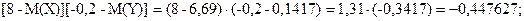 Таблица распределения вероятностей случайной величины [X-M(X)][Y-M(Y)]: