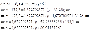 Результаты обследования 50 учеников: По данным таблицы требуется: - написать выборочные уравнения прямых регрессии Y на X и X на Y; - вычертить их графики и определить угол между ними; - по величине угла между прямыми регрессии сделать заключение о величине связи между X и Y. Решение. Принимая рост всех учеников, попавших в данный интервал, равным середине этого интервала, а вес – равным середине соответствующего интервала, получим так называемую корреляционную таблицу: Для роста X получим: 1. Выборочная средняя –