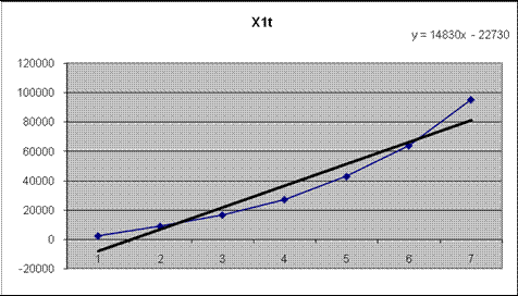 Для каждого ряда строим тренды. При их построении пользуемся коэффициентами уравнений тренда, представленных на следующих графиках для разных переменных: