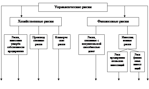 ![]() На рисунке представлены основные группы рисков деятельности производственного предприятия (фирмы), среди которых, прежде всего, следует выделить хозяйственные риски. Входящий в группу хозяйственных рисков производственный риск проявляется в возможности уменьшения объема выпуска продукции, снижения ее качества, роста издержек производства и уменьшения производительности труда, возникновения убытков в результате простоя производства, потерь рабочего времени, недопоставок исходных материалов, сырья, энергии и т.д. Риск нанесения ущерба собственности предприятия (фирмы), его движимому и недвижимому имуществу (машинам и оборудованию, денежным средствам и т.п.) обусловлен возможностью кражи, диверсии, халатности, перенапряжения технической и технологической систем, аварии, пожара, наводнения, механического либо радиационного воздействия и другими причинами. Коммерческий риск связан с процессом реализации товаров и услуг, производимых или закупаемых предприятием, и проявляется в снижении объема реализации товаров вследствие изменения рыночной конъюнктуры и неблагоприятного изменения цен, повышения издержек обращения, потерях товара в процессе его обращения и др. В последние годы отмечается значительное повышение для российских предприятий значимости финансовых рисков, которые связаны с вероятностью потерь финансовых ресурсов (т.е. денежных средств). Так, под воздействием инфляционного риска получаемые предприятиями в 1992-1995 гг. денежные доходы обесценивались с точки зрения реальной покупательной способности быстрее, чем росли. Наряду с инфляционным риском весьма значимыми для многих предприятий оказались риски ликвидности и валютные риски, входящие в группу рисков, связанных с покупательской способностью денег. Риски предпринимательских инвестиций связаны с рисками прямого вложения средств в осуществление того или иного конкретного инвестиционного проекта. Для предприятия наиболее существенными в этой группе могут быть риски заказчика строительных работ, кредитный риск заемщика, риск ущерба в результате ошибок или упущений, связанных с оформлением права собственности на приобретаемый для предпринимательских целей объект, и т.д. риск финансовых инвестиций проявляется в результате приобретения предприятием (фирмой) активов в виде ценных бумаг. Управленческие риски включают риск отсутствия стратегического подхода к планированию и управлению на предприятии, риск ошибок в определении целей предприятия, прогнозировании развития внешней среды в стратегическом планировании, риск несоответствия системы управления предприятия масштабам и характеру его деятельности и др. Управленческие риски в значительной мере носят субъективный характер. Ведь именно предприниматель определяет цели предпринимательской деятельности, оценивает ситуацию, формирует варианты решений, делает выбор приемлемого решения. Управленческие риски двояко влияют на совокупный предпринимательский риск: наряду с прямым воздействием, они могут влиять опосредованно, порождая или, наоборот, устраняя (снижая) отдельные хозяйственные и финансовые риски. Таким образом, управленческие риски занимают главенствующую позицию в совокупности основных групп рисков деятельности предприятия (фирмы). Управление рисками и их предупрежде