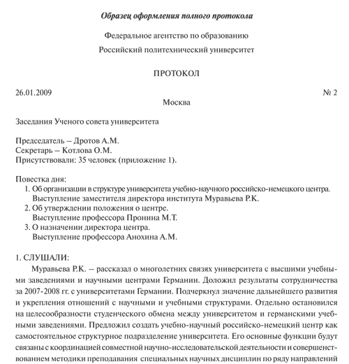 Реферат: Виды протоколов. Правила их оформления