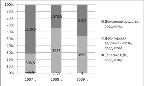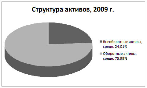 Рис. 5. Структура активов Анализ оборотных средств Таблица 9 Анализ оборотных активов