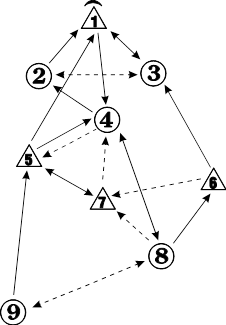 З даної социограммы можна багато з'ясувати про соціум. При першому, поверхневому погляді, ясно що лідерів у групі три: це номера 1, 4 і 5; 1 і 4 є центрами відповідно чоловічої і жіночої уваги відповідно. 9 знаходиться поза соціумом, а 5 тримається тільки за рахунок міцної дружби з лідером 1. При більш повному розгляді социограммы ви можете уловити деталі які від мене вислизнули. Тепер, коли ви довідалися дещо про колектив, можете приступати до розробки гри: вибору теми (жанру), підбору початкових умов, розробці ланцюга подій і динаміки гри. |