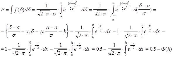 Как видно из рисунка возможны 3 соотношения величин dл, dп, m. Т.к. графики функций распределения симметричны и одинаковы, то можно сказать: mл =mп =m 1. dл>m, тогда P1 =P(dл>m) 2. dп>m, тогда P2 =P(dп>m) 3. dл>m и dп>m, тогда P1 P2 =P(dл>m и dп>m) Видно, что P1 =P2 (графики симметричны и одинаковы) Pош =P1 +P2 -P1 P2 =2P-P2 Зная это найдем вероятность превышения краевыми искажениями исправляющей способности приемника: