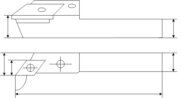 Черновой резец проходной с φ=95˚, с ромбической пластиной (ε=80˚) из твердого сплава (ТУ 2-035-892-82). RCLNR2225M12