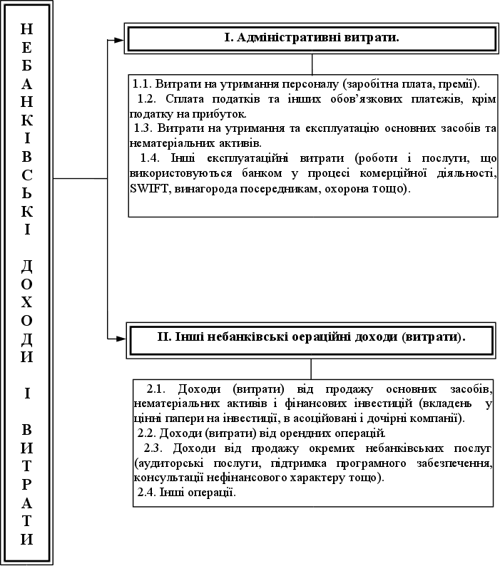 ІІ. Небанківські операційні доходи і витрати. Небанківські операційні доходи (витрати) діляться на такі групи: