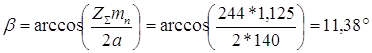 условие контактной прочности выполняется Окружная сила [1,ф.(4.44),с.99]: Модуль [1, ф. (4.45), с. 99]: Где К = 3,5 [1] с. 99 Принимаем согласно рекомендациям [1 с. 53] mn = 1,125 мм Принимаем угол наклона линии зуба b=12° Суммарное число зубьев [1, ф. (4.49), с. 100]: Zå = Z1 +Z2 = (2a/mn )cos(b) = (2* 140 / 1,125 )*cos(12°) = 243,45 Принимаем Zå = 244; Число зубьев шестерни и колеса: Z1 = Zå /(U+1) = 244/(3,55+1) = 53,63; Принимаем Z1 = 54; Z2 = Zå - Z1 = 244 - 54 = 190 Уточняем угол наклона линии зуба: