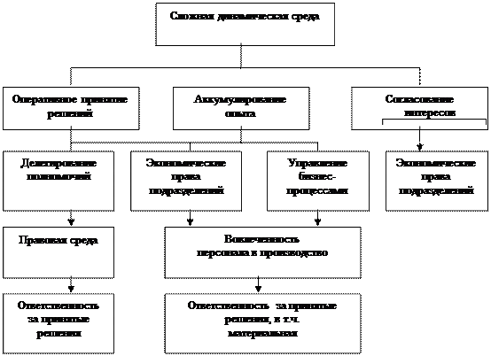 При рассмотрении вертикально организованных структур, очевидно, что ввиду их инерционности и формальности такие структуры управления не могут оперативно и адекватно соответствовать следующим требованиям динамичной среды предприятия (рис 3.1.)[18] :