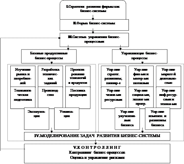 Таким образом, целевое развитие фирмы как бизнес-системы целесообразно рассматривать в качестве определенного технологического процесса воздействия на структуру бизнес-системы через согласованные изменения входящих в нее элементов.