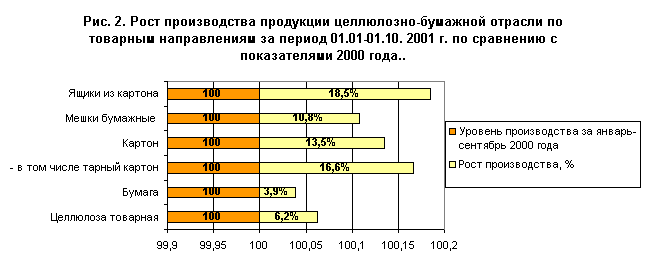 Н Данные Госкомстат РФ. Производство картонных ящиков возросло на 18,5% и составило 93,7 млн. кв. м., темпы роста производства картонной тары превысили темпы роста картона в целом: производство картонной тары увеличилось на 16,6%, что составило 126 тыс. тонн. В целом за этот период было произведено картона на 13,5% больше, чем за аналогичный период прошлого года, тогда как Минэкономразвития РФ прогнозирует рост производства картона в 2002 году – на 11% (рис.3).